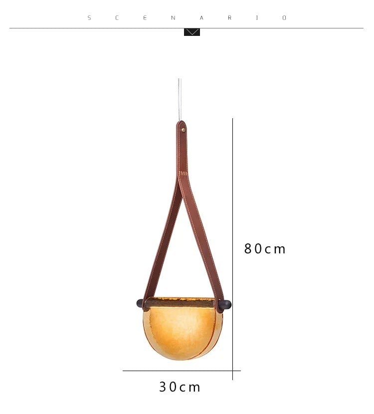يتميز المصباح بتصميمه العصري الأنيق الذي يجمع بين الزجاج المصهور وخشب البلوط الطبيعي والجلد الفاخر. هذا المزيج الفريد يضيف طابعًا راقيًا ومميزًا للمكان.