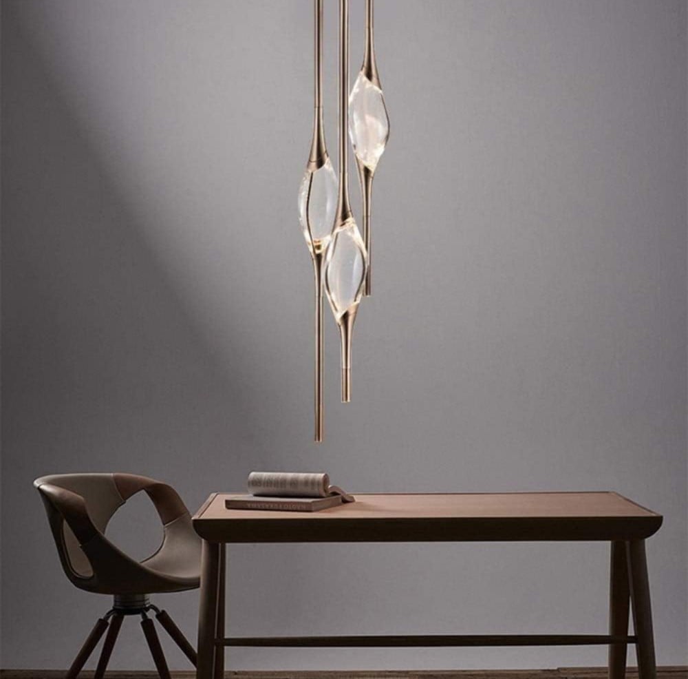 3 مصابيح معلقة بقاعدة واحدة من النحاس والكريستال LUX-C-1036