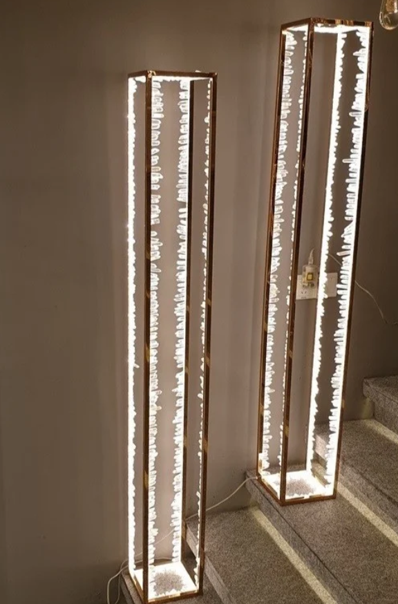 يأتي مصباح أرضي led من الكريستال بتصميم عصري وأنيق يناسب جميع المساحات الحديثة. يتميز المصباح بجودة عالية ومواد تصنيع فاخرة مما يجعله خيارًا مثاليًا لإضاءة الأماكن الفاخرة مثل غرف المعيشة، وغرف الطعام، والممرات، وكذلك الفيلات والفنادق.