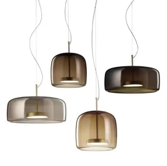 تتيح الإضاءة القابلة للتعديل التحكم في مستوى طول اللمبات ومستوى السطوع حسب الحاجة، سواء للعمل اليومي أو خلق جو هادئ أثناء الأمسيات مثل إضاءة معلقة من الزجاج والمعدن ذات تصميم عصري ومزيجها الأنيق من اللون الرمادي الدخاني والذهبي، تمنح هذه الإضاءة المعلقة ديكورك لمسة راقية تجمع بين الأناقة والتكنولوجيا الحديثة.