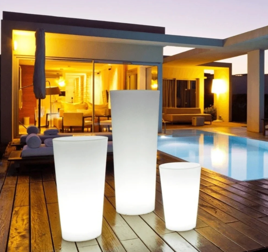 أحواض زرع مودرن 40 سم إضاءة LED RGB، حيث توفر الأضواء المتغيرة الألوان لمسة فنية جذابة وتضيف جوًا دافئًا للمكان، ويمكن استخدامها في المنازل، الحدائق، الفناء الخلفي، أو حتى داخل الشرفات والأماكن الصغيرة، مما يوفر لك مرونة عالية في تحديد مكان الزراعة.