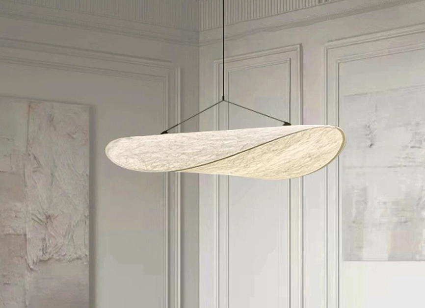 تعتمد هذه التصاميم على البساطة والخطوط النظيفة، مما يجعلها مثالية للمساحات العصرية التي تفضل الأناقة بدون تعقيد مثل ثريا من القماش المنفذ للضوء شكل بيضاوي وتتميز هذه الثريا باستخدام مواد حديثة مثل القماش المنفذ للضوء مع ألوان هادئة، وسعرها 862 ريال سعودي.