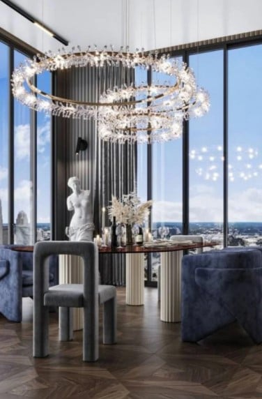 كلما زادت مساحة الصالة وارتفع سقفها، زادت حرية اختيار ثريا كريستال كبيرة الحجم.