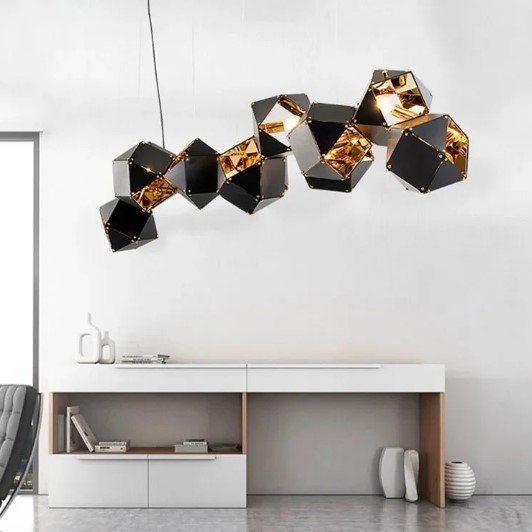 · مصابيح متدلية فوق طاولة الطعام لإضافة لمسة أنيقة.