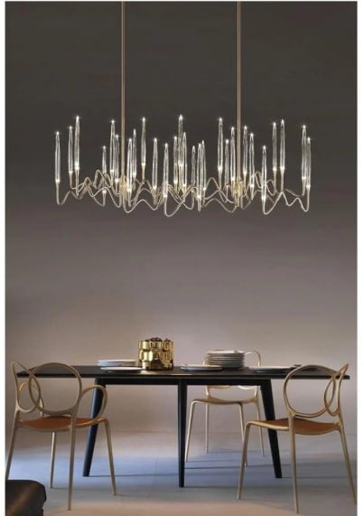 الثريات الكريستالية تناسب الطراز الكلاسيكي والفخم أما المعدنية أو LED تناسب الأسلوب العصري والمودرن.